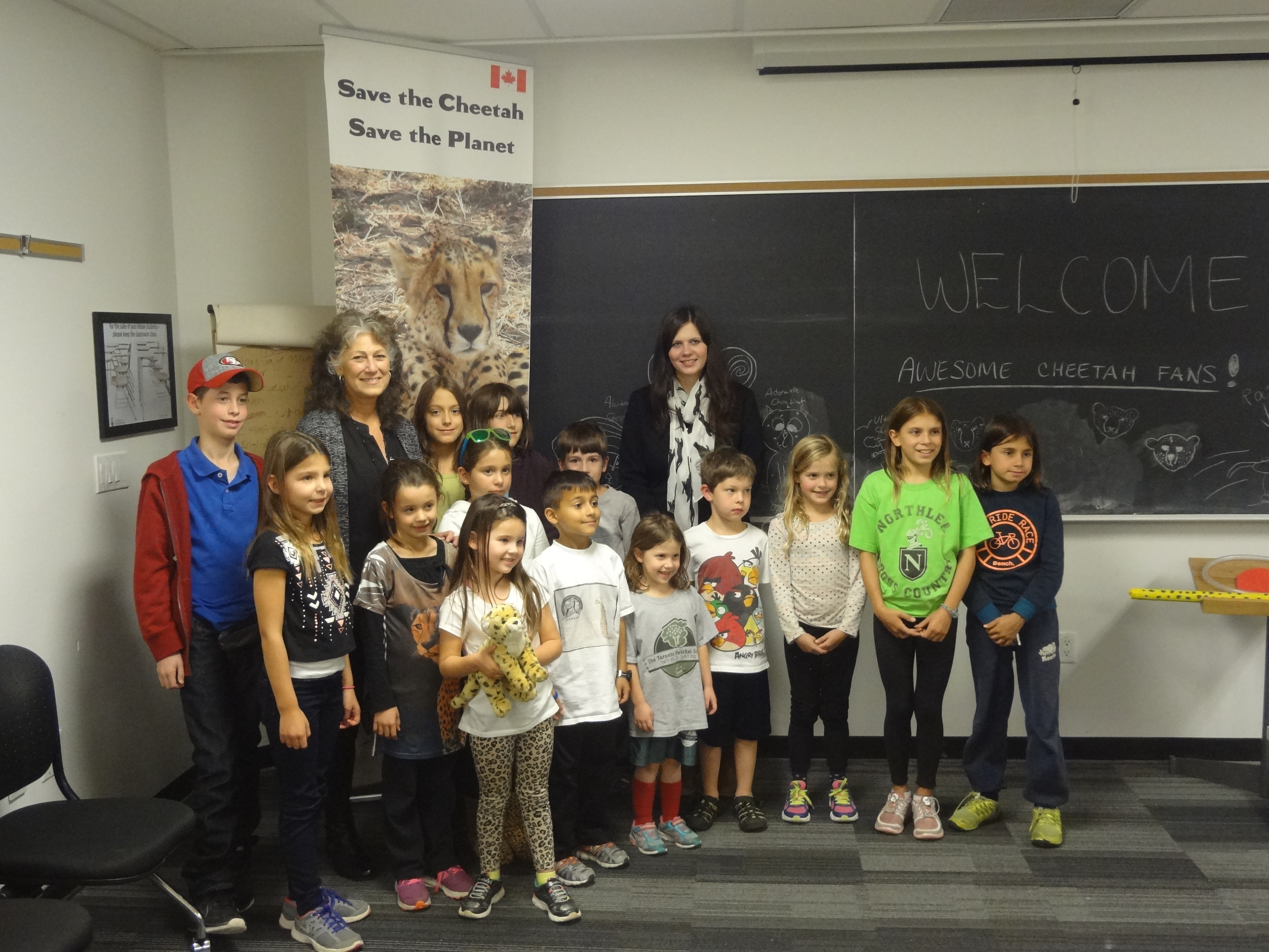 ECHOage has made it possible for kids across Canada to celebrate their birthdays and donate to Cheetah Conservation Fund Canada. Most of the world’s cheetahs live in southern Africa, in Namibia. When the founder of Cheetah Conservation Fund and the world’s leading expert on cheetahs, Dr. Laurie Marker, recently came to Toronto, it provided a wonderful opportunity for more than a dozen young people (along with their parents) to get together and talk to the “Cheetah Lady”. Dr. Laurie has lived and worked in Namibia for more than 30 years and has worked with cheetahs in the wild as well as those who have been orphaned and are in the care of Cheetah Conservation Fund.