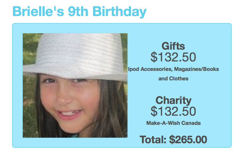Here is what Brielle had to say about her charity choice. “I chose the Make-a-Wish Foundation because I wanted to help sick kids my age, older and younger to make their last wish come true and help them go places and meet their heroes.”